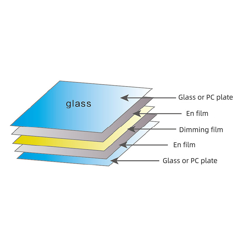 ডিমিং ফিল্মটি আঠালো একটি স্তরে তৈরি করা যেতে পারে, যা সরাসরি কাচের সাথে সংযুক্ত করা যেতে পারে, বা ল্যামিনেশন প্রক্রিয়া ব্যবহার করে কাচের দুটি স্তরের মধ্যে স্যান্ডউইচ করা যেতে পারে (অর্থাৎ, ডিমিং গ্লাস)। ডিমিং ফিল্মে প্রয়োগ করা ভোল্টেজ স্মার্ট ফিল্মটিকে স্বচ্ছ বা কুয়াশাচ্ছন্ন দেখায়, যা কাচের অনুপ্রবেশ এবং গোপনীয়তার জন্য মানুষের দ্বৈত প্রয়োজনীয়তা পূরণ করে। এমনকি যখন এটি অস্বচ্ছ হয়, আলো এখনও ভাল, যা এমন কিছু যা সমস্ত বর্তমান পর্দা অর্জন করতে পারে না।